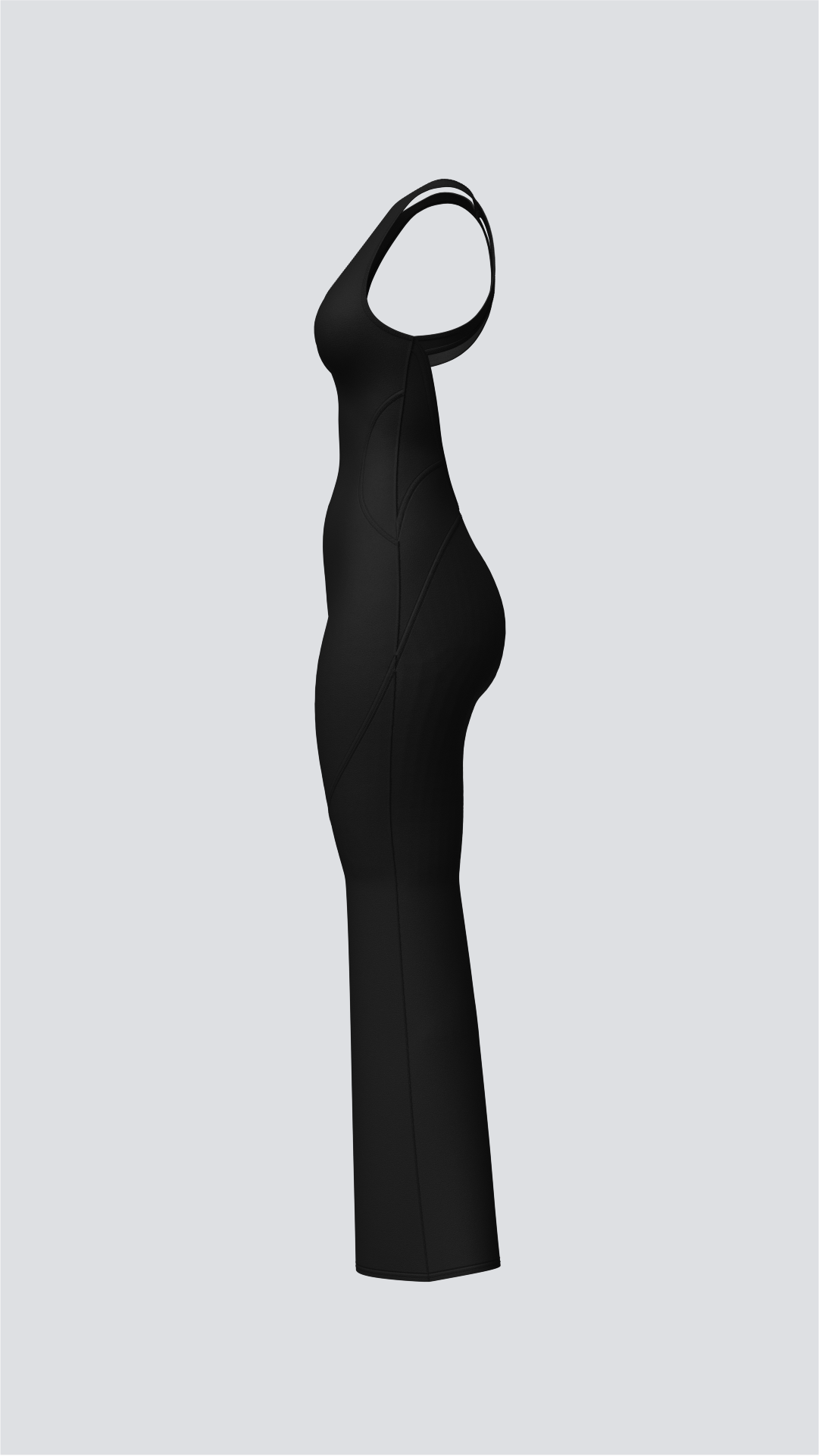 A Classy open back with U-neck and flared pants, crafted from soft, second skin fabric with stitching details